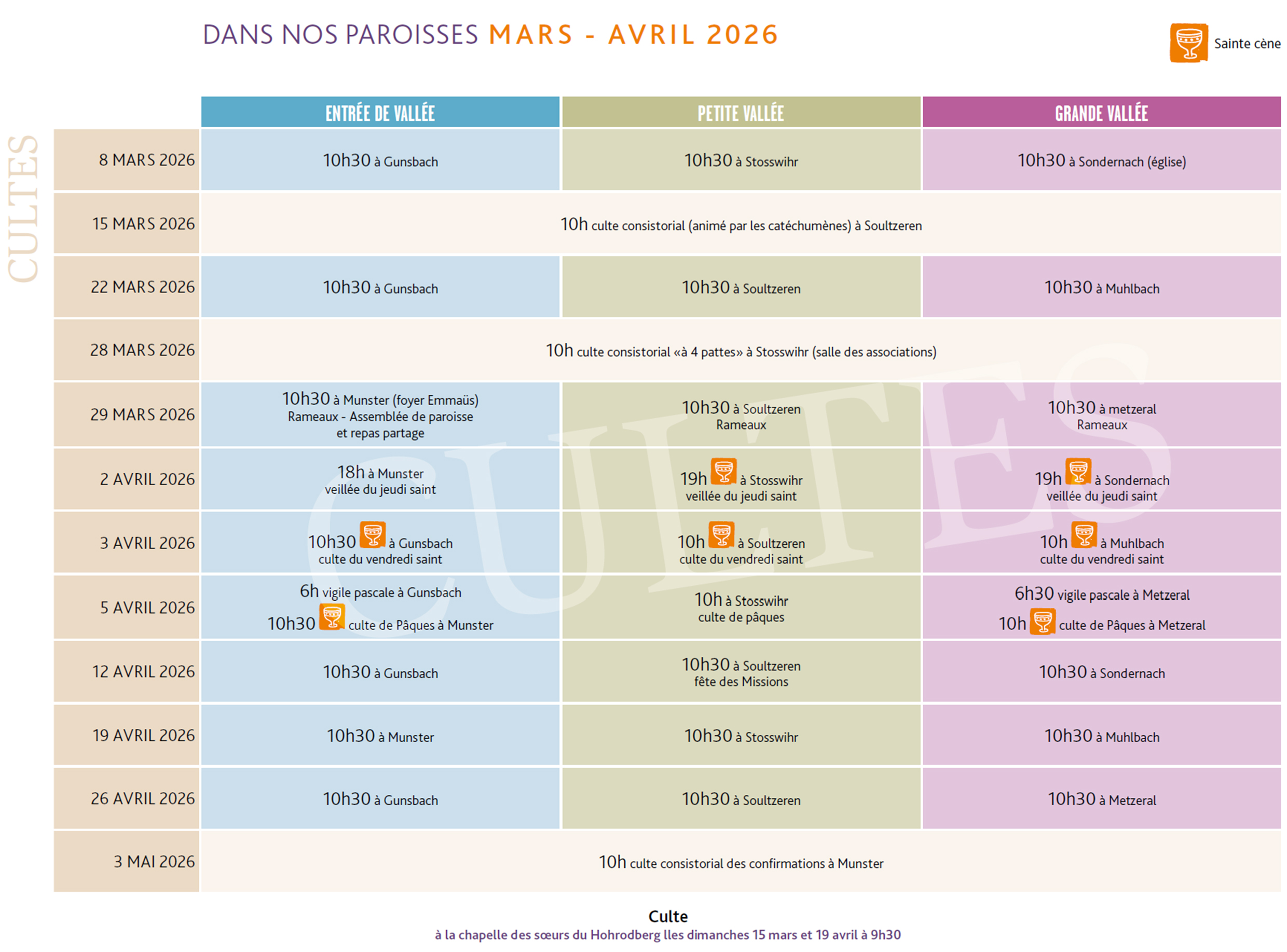 LES CULTES À VENIR